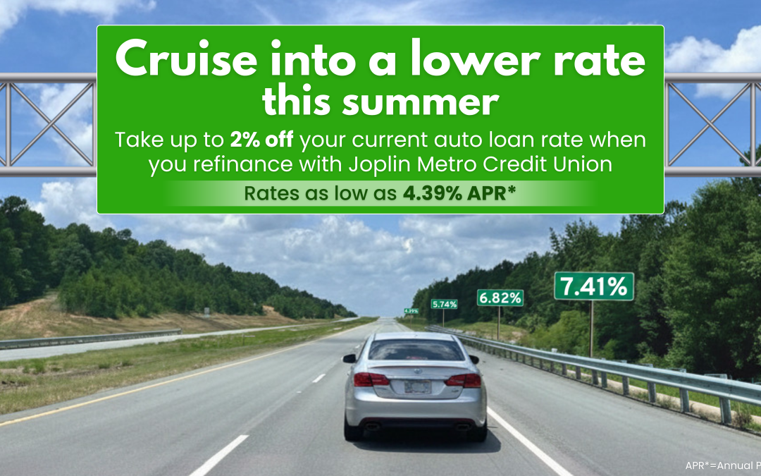 Take up to 2% off your current auto loan rate when you refinance from another lender with Joplin Metro Credit Union.